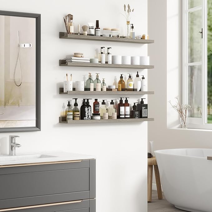 - 【Versatile Shelves Sets】If you find yourself with a plethora of pictures but are unsure how to showcase them, our picture ledge shelves—especially in large sizes—are the perfect solution! Our hanging shelves provide a secure and stylish way to store and display various types and sizes of photo frames in one convenient location, ensuring they stay safely in place without any fears of falling.