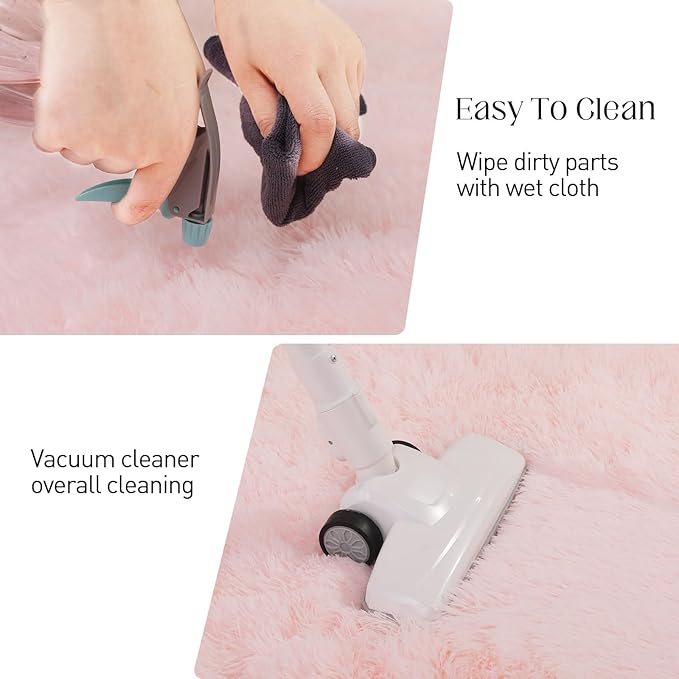 - How to Clean: We recommend spot cleaning stains on the shag rug using a damp cloth or hand washing. For regular maintenance, use a vacuum cleaner to remove food residues and dust from the surface of the plush rugs. While machine washing is option, it may reduce the lifespan of the living room rug. Therefore, we prioritize and suggest wash by hand as the preferred method