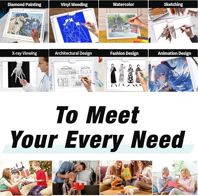 - 【Widely Used & Best Gift】A3 tracing board is large enough,measures 16.73 "x 13.5 "(42.5cm x 34.3cm), with a visible working area of 15.35 "x 11.89 "(39cm x 30.2cm).thin and easy to carry. Suitable for diamond painting,weeding vinyl.It's also great for sketching and painting, stenciling, 2D animation, calligraphy, embossing, scrapbooking, tattoo transfers,streaming, sewing projects, stained glass, quilting,and more.Best gift for Christmas, birthday or other holidays.