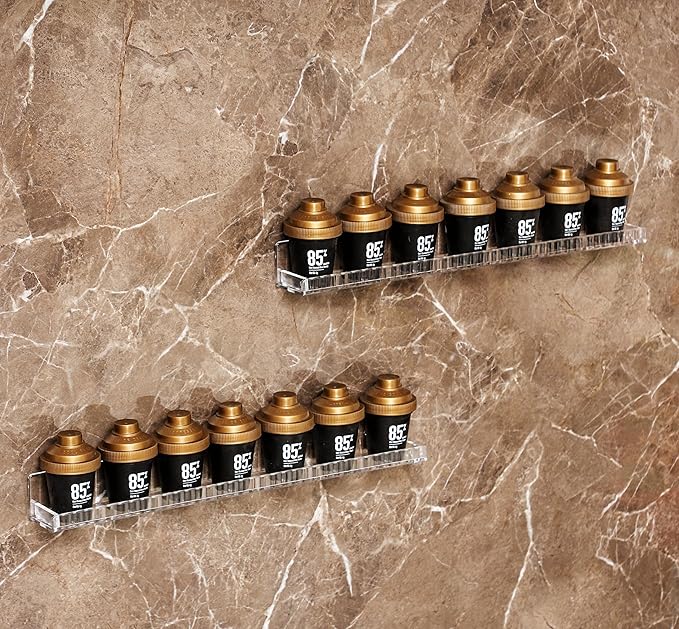 - SIZE:15x1.77x1.58(LxWxH)inch/each,5mm thickness.The inner diameter of the acrylic shelf is 1.5"(Please confirm that the bottle diameter is not greater than 1.5" before purchase)package include 4 pieces of acrylic wall book shelf and install hardware,if use it as nail polish organizer,holds up to 60 bottles of nail polish (actual number may vary based on size and shape of bottles),each wall floating shelf is individual,It can be installed in a row or separately according to your preference.
