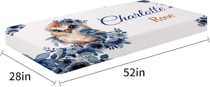 Personalized Baby Crib Bedding Set - Custom Name Owl Pattern 3 Pcs Set - Soft Blanket with Double Layer Dotted Backing, Fitted Sheet, Room Rug for Newborns Boys Girls Shower Gift
