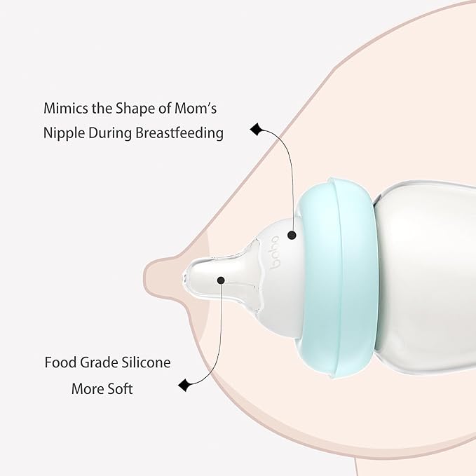 - Glass natural baby bottles with natural response nipples can control the speed of milk according to the baby suction, just like the natural sensation of breastfeeding.