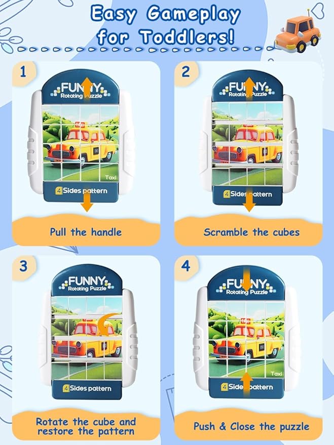 - A HANDY TOY FOR OUTINGS - Whether in the car or at a restaurant, our compact Rotating Puzzles can be carried along and keep children quiet and occupied. Moreover, there is no risk of missing pieces after playing with this all-in-one design puzzle!