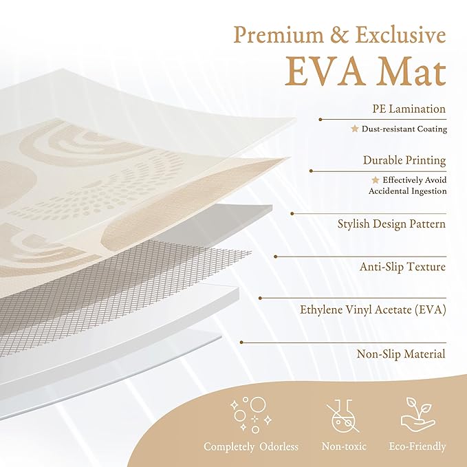 - 【SAFE MATERIALS】Made from durable, shock-absorbing, odorless, and non-toxic EVA foam, our mats ensure safety and comfort. Using a unique printing method, it effectively addresses issues like sun fading and peeling that other brands often encounter, prevents small pieces from breaking off and being accidentally swallowed by babies, and enhances overall durability. With zero-benzene technology, it eliminates toxic odors found in many commercial products, ensuring non-toxic and safe floor mats.