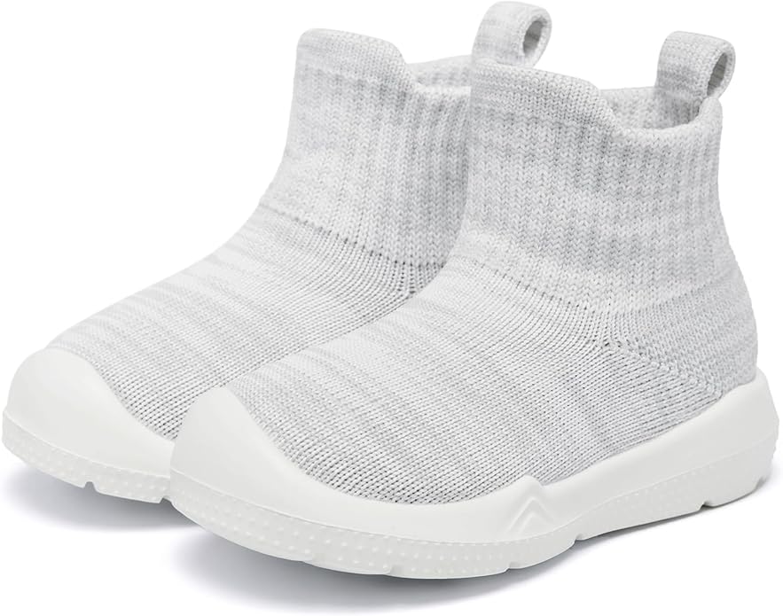 • Friendly Sock-like Upper: Sock-like stretchy textile construction upper hugs the foot to keep them comfortable and flexible when babies are on the move. Baby sock shoes made of soft fabric knit are also friendly to the skin, healthy, and very safe for infant babies.
