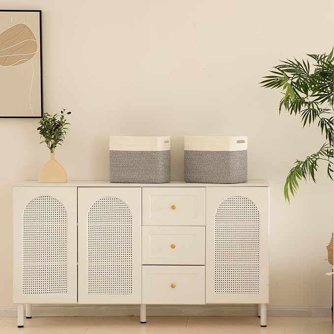 - 100% Cotton Rope Storage Baskets:OIAHOMY storage bins are made of high-quality natural cotton, chemical free and safe for kids and pets. It will not scratch your furniture and floor and more firm than plastic basket