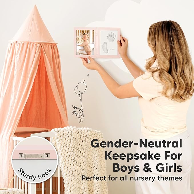 Personalized Baby Hand and Footprint Kit, Quick Dry Clay - Newborn Keepsake Feet and Handprint Kit, Nursery Picture Frame, New Mom Gifts for Baby Showers & Registry (Petal Pink)
