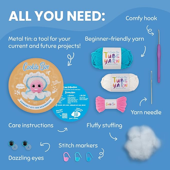 - 💖 Our Promise to You: The entire Cookie Box team is committed to making crochet truly beginner-friendly, frustration-free, and rewarding. Every kit is designed for the best learning experience, combining high-quality materials, clear guidance, and real support. Thank you for being part of the Cookie Box crochet community!