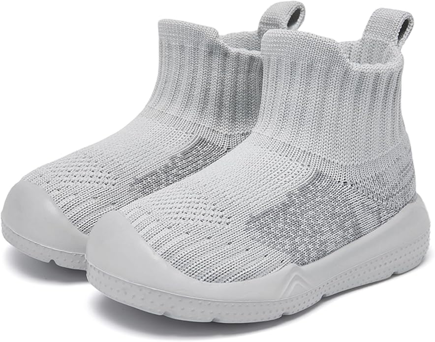- Friendly Sock-like Upper: Sock-like stretchy textile construction upper hugs the foot to keep them comfortable and flexible when babies are on the move. Baby sock shoes made of soft fabric knit are also friendly to the skin, healthy, and very safe for infant babies.