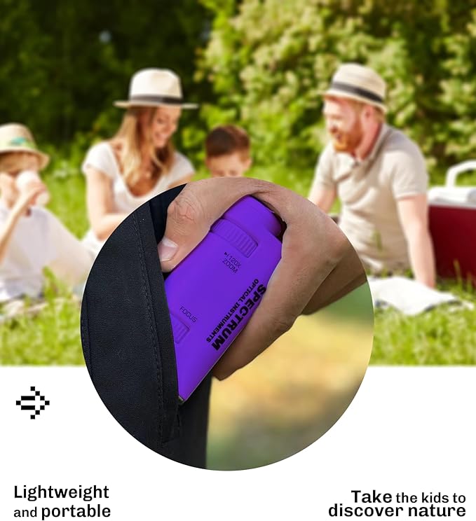 - 【pocket size 】Our mini microscope has a size of 2.5" x 1.4" x 4.5" and weights in only at 0.16 lb. Its compact size makes it easy to travel with, to be taken on a field trip, and be used at school for science project.
