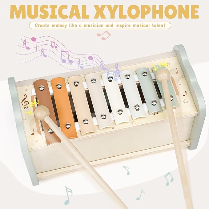 - Montessori-Inspired Learning for Toddlers - Nurture your child's early development with this thoughtfully designed toy set. The mole-tapping game strengthens motor skills and reflexes, while the magnetic fishing game sharpens hand-eye coordination. The xylophone introduces the joy of music, and the gear-spinning activity encourages problem-solving and logical thinking. Perfect for curious babies aged 12 months and up!
