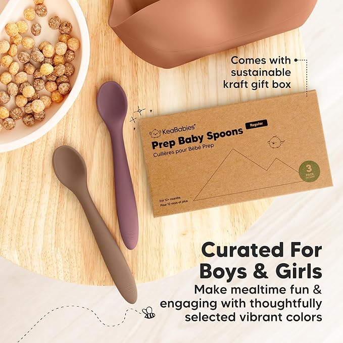 - Safer Silicone - KeaBabies 3-Pack Prep Silicone Baby Spoons Set is made from 100% food-grade, BPA-free silicone. With a topple-free handle and comfort sized scoop, these toddler spoons help BLW toddlers build confidence as they learn self-feeding.
