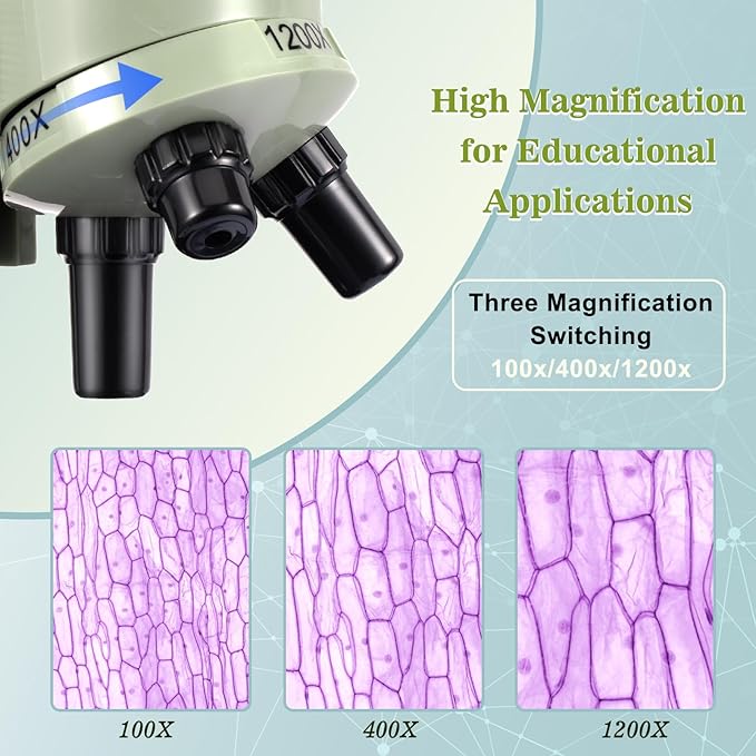 - THE POWER TO SEE THE UNSEEN: This kids' microscope features a monocular viewing head with an LED light. Offering 100X, 400X, and 1200X magnification levels, it opens a window into the microscopic world, revealing hidden details that captivate both children and adults.