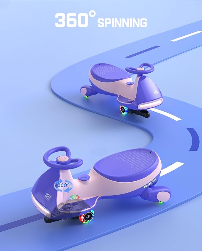 - Flashing Wheels and Bluetooth: When you slide on the wiggle car with pedals, the front light guide you forward, and the magnetic flash wheels flash with colorful lights. Light up PU wheels no batteries needed, provide shock absorption, glide smoothly and do not scratch the floor. Connect to Bluetooth to freely adjust the volume and songs, adding fun to your child's driving experience
