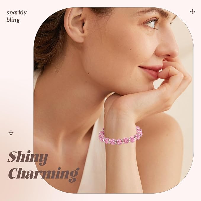 160pcs 10mm Rhinestone Beads for Jewelry Making, Pink Shiny Round Disco Ball Beads Bulk, Sparkle Crystal Clay Christmas for Bracelet Baseball Necklace Earring Crafting and DIY
