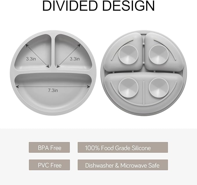 - Divided Suction Plates for Baby: Our toddler plates feature different split compartments to dispense different flavors, and the non-slip bottom ensures that plates won't be thrown to the floor, thus reducing messes!