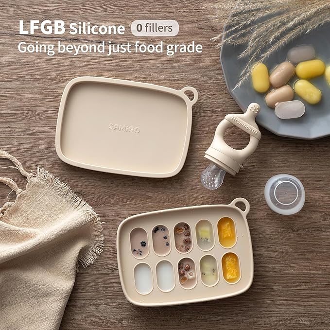 SAMiGO Baby Food Fruit Feeder and Breastmilk Popsicle Mold Set, Silicone Fruit Teether, Food Feeder Pacifier for Teething Relief, Freezer Tray, Baby Feeding Essentials, 4 Months+
