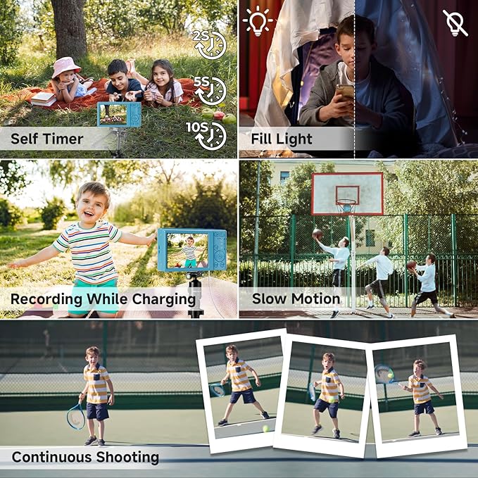 - 【4K Ultra FHD & 44MP Digital Camera】The 2024 upgraded kids digital camera offers a 44MP CMOS sensor for high-resolution photos and 4K Ultra FHD video recording.Features a 2.8-inch IPS screen for easy viewing and framing shots. Includes a 64GB memory card for ample storage, making this digital camera for kids 10-12 and teens great for capturing everyday moments and adventures.