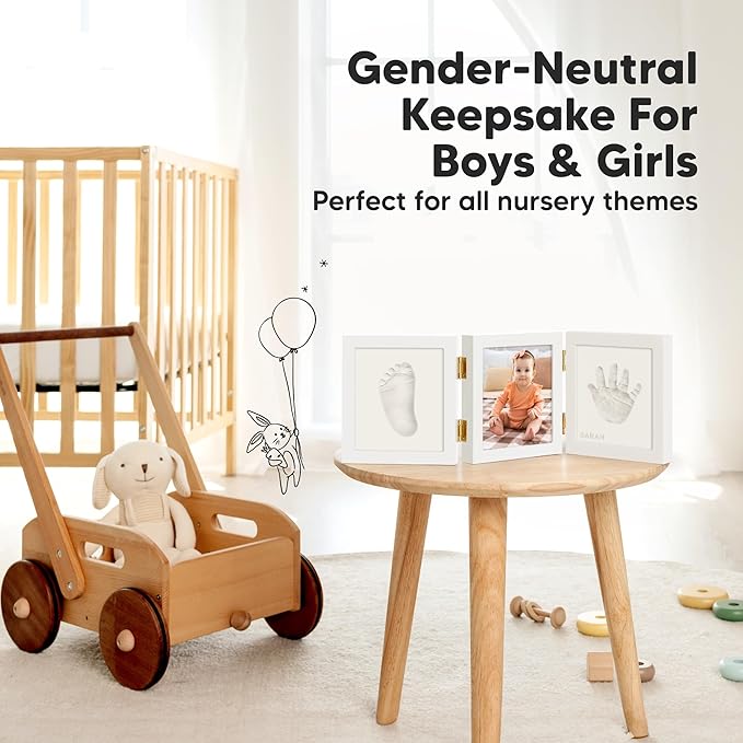 - Sturdy Wood Frame, Real Glass Cover - Our tri-fold baby handprint footprint keepsake kit maintains its pristine condition for years to come. It’s a lovely, everlasting newborn keepsake for your baby room decor. A must-have newborn baby essentials.