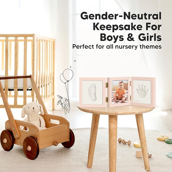 Baby Shower Gifts for Boys, Girls - Baby Hand and Footprint Kit, Newborn Handprint Kit, Keepsake Photo Frame, Nursery Picture Frame, Gender-Neutral Newborn Keepsake Gifts (Petal Pink)