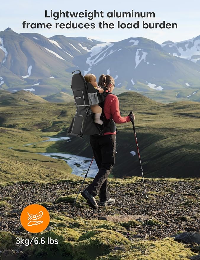 - Carry Your Kid Safely & with Ease: besrey hiking backpack carrier is specially made keeping in mind the well-being of the toddler. It has 5-point seat belts which are made of super soft material and the flexible straps and stirrups keeps the toddler in a comfortable and safe position while enjoy the trip.
