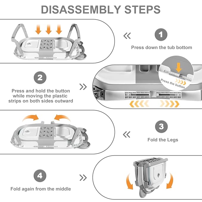 - Double-Fold Collapsible Design: TPN collapsible baby bathtub features an ingenious double-fold design, compactly measuring less than 4 inches in thickness. This facilitates effortless storage in any corner and enhances portability for on-the-go convenience, making it a perfect companion both at home and during travel. The off-the-floor drain with a user-friendly rubber plug guarantees seamless draining without the need for relocation.