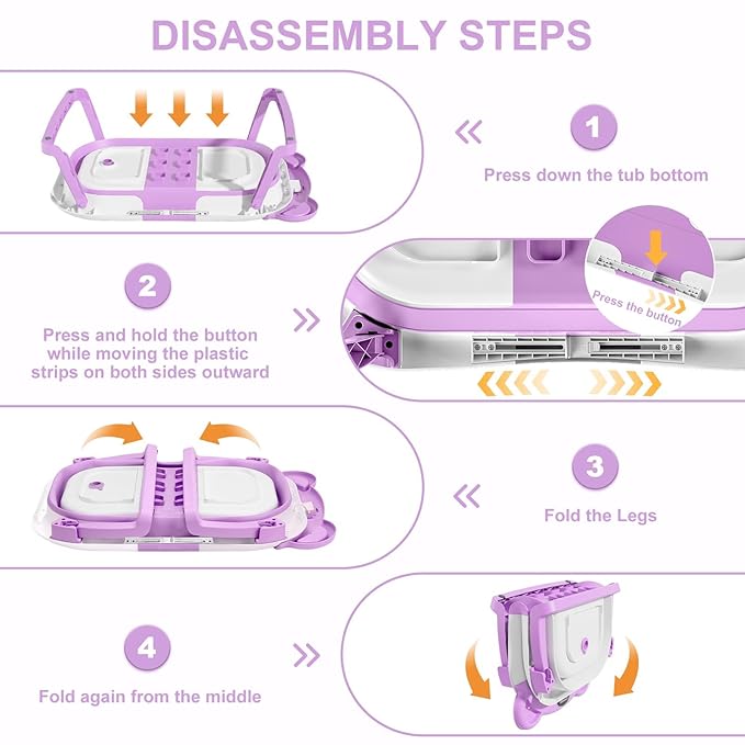 - Double-Fold Collapsible Design: TPN collapsible baby bathtub features an ingenious double-fold design, compactly measuring less than 4 inches in thickness. This facilitates effortless storage in any corner and enhances portability for on-the-go convenience, making it a perfect companion both at home and during travel. The off-the-floor drain with a user-friendly rubber plug guarantees seamless draining without the need for relocation.