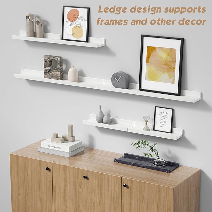 - 【Multiple combinations, More creativity】 You can connect two or more picture shelves together to hang them in a line all as a EXTRA LONG SHELF to hold picture books, small stuffed toys, car models in your kids nursery. They can also be hanged as vertical model as shelving unit and hold photo frames, collectibles, small plants, canvas, knick knacks, pop figurines, mugs and vinyl records to form your gallery wall in your living room, bedroom, family room or home office.
