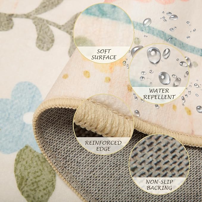 - Vintage Floral Design:This area rug combines floral,vintage,and boho elements,making it the perfect choice to complement any home decor.With its digitally printed design,the pattern and lines are gentle,while the colors are more vibrant.It can create a cozy and warm atmosphere in any room of your home