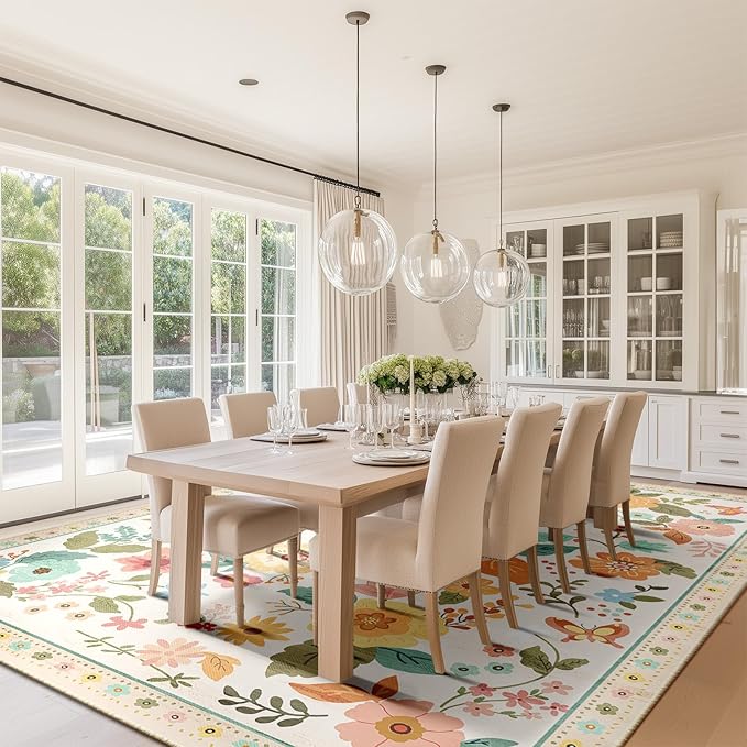- Machine Washable:The bedroom rugs are machine washable,allowing for both machine wash and hand wash options.It is recommended to wash them in cold water.This floral rug is crafted with a low pile that wonโt block opening and closing doors, make machine wash possible.Small stains can be blotted with a rag,soft-bristled brush,vacuum,or robotic vacuum cleaner.Avoid using bleach and high-temperature ironing
