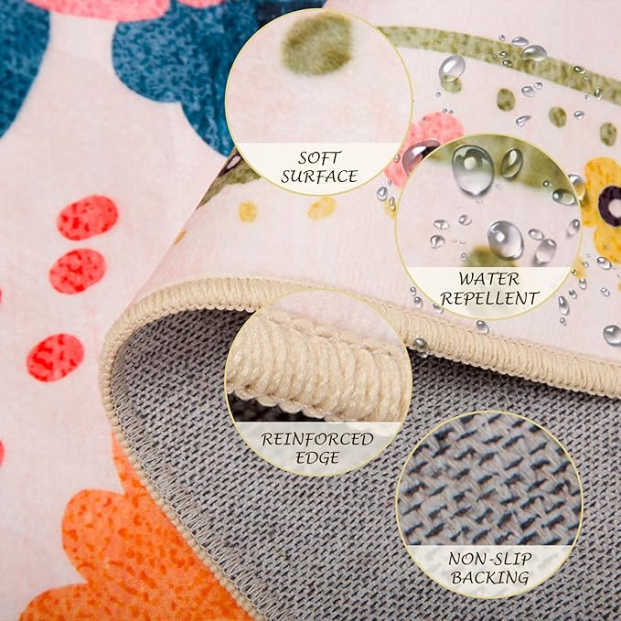 - Machine Washable:The bedroom rugs are machine washable,allowing for both machine wash and hand wash options.It is recommended to wash them in cold water.This floral rug is crafted with a low pile that wonโt block opening and closing doors, make machine wash possible.Small stains can be blotted with a rag,soft-bristled brush,vacuum,or robotic vacuum cleaner.Avoid using bleach and high-temperature ironing