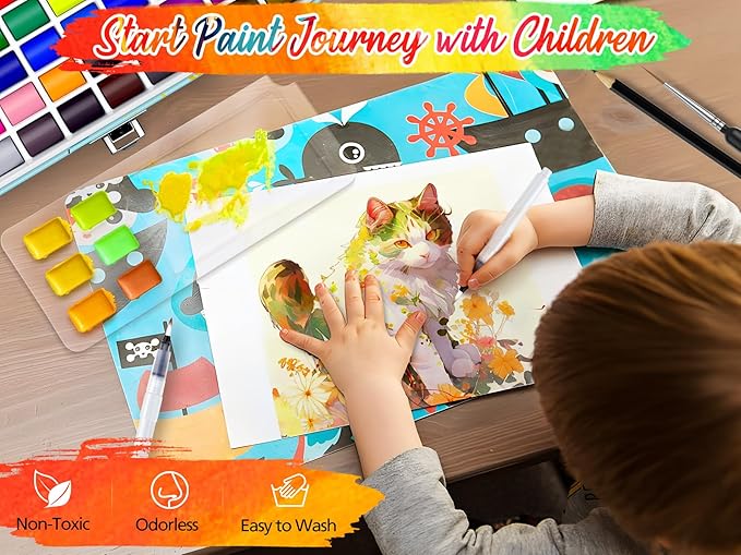 - 【180 PCS All in One Art Kit】The Premium watercolor set includes 106regular colors, 56 metallic colors, 6 fluorescent colors, 3 water brush pen, 6 detail paintbrushes, 1 art sponge, 1 swatch sheet, 1 HB pencil, total 180pcs!