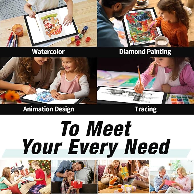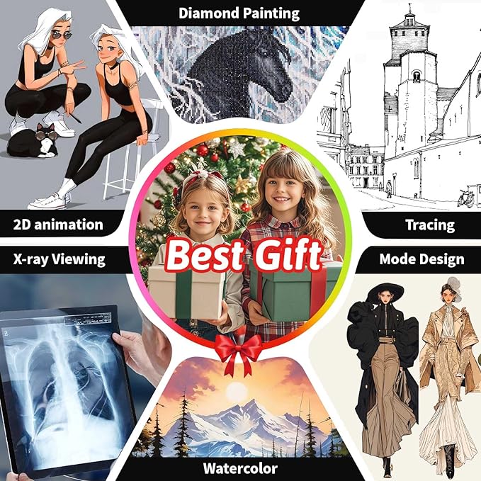 - 【Multiple Uses】Zocelight light pad, suitable for diamond painting,drawing,tracing,animation,sketching,calligraphy,sewing projects,Weeding Vinyl,architectural design,X-ray viewing,and more.art drawing supplies for kids and artists,also the amazing gift for Children's Day, Christmas, birthdays or any other holidays.