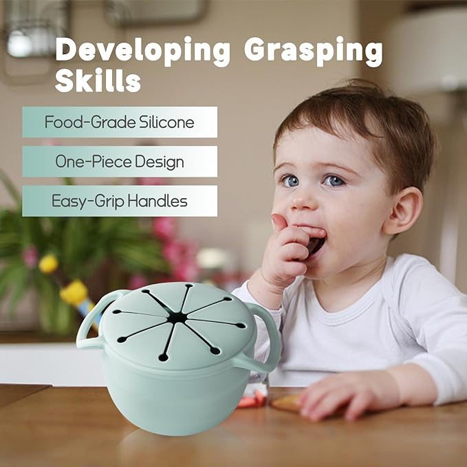 - Safe and Non-Toxic: Made from 100% food-grade silicone, these baby snack containers are free from BPA, PVC, and phthalates. Rest easy knowing that your toddler's hands will be safe from sharp edges while they reach for their snacks, providing a worry-free snacking experience.