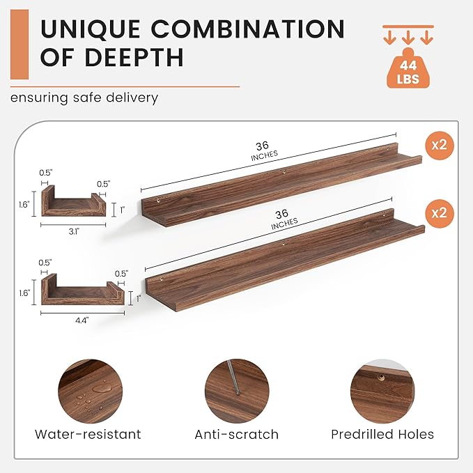 • 【Easy to Install】FLYJOE picture ledge shelves are quick and easy to install! Each set comes with pre-drilled holes and all necessary hardware, including a mini level for perfect alignment. With simple instructions, you can have your shelves up in minutes, allowing you to start decorating right away