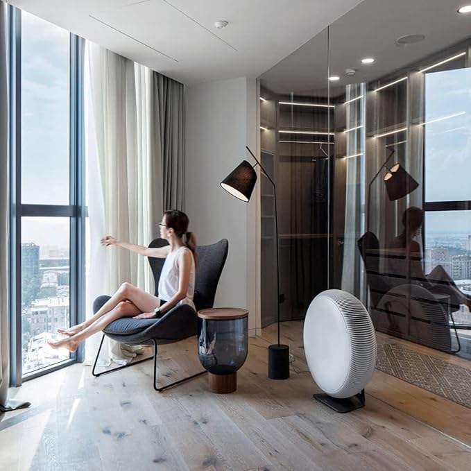 - QUIET, SPACE SAVING DESIGN: One of the quietest, high-performance air purifiers on the market. Slim, minimalist design with a depth of only 25 cm (10 inches) integrates beautifully into any space. Made at IQAir’s state-of-the-art production facility in Germany. Dimensions (including stand): H 27.1” x D 10” (H 688 x D 254 mm)