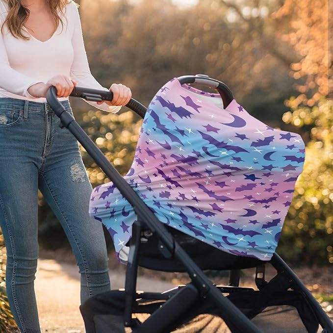 Binienty Halloween Bats Car Seat Cover Canopies for Baby Multi Use Cover Nusring Covers Stretchy Infants Stroller Cover/High Chair/Breastfeeding Cover