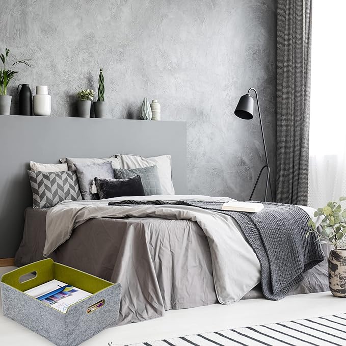 - 【Sustainable material】 Recycled felt with comfortable touch feeling, soft to prevent scratching,flexible for space saved up on desk, office ,bedroom, closet ,kitchen,bathroom or anywhere you desire with these stylish storage and organizer bins.