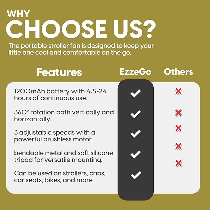 - ๐๐๐ฟ๐ฎ๐ฏ๐น๐ฒ & ๐ฆ๐ฎ๐ณ๐ฒ ๐ณ๐ผ๐ฟ ๐๐ถ๐ฑ๐: Designed with silicone blades, sturdy portable tripod and attachable clip-on design, this kids stroller fan ensures maximum comfort while keeping safety in mind