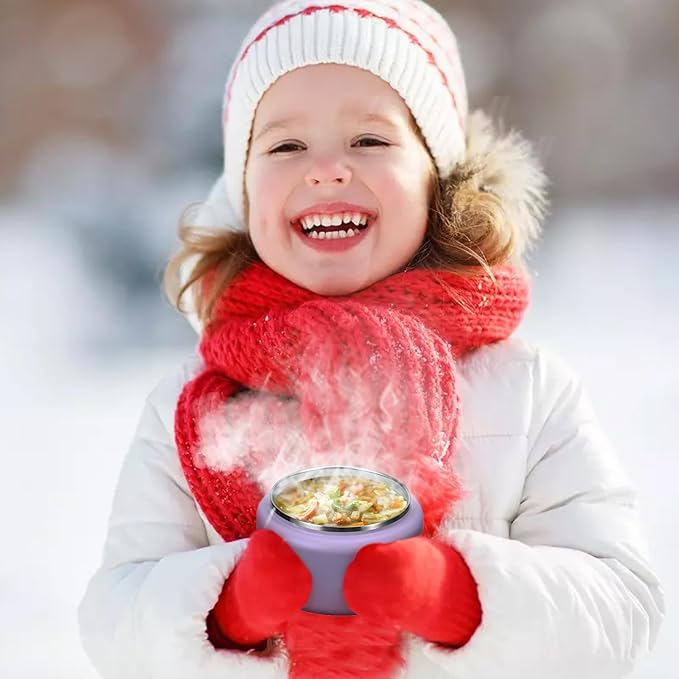 13.5oz Kids Thermos for Hot Food, Insulated Vacuum Food Jar with Buckle Lid, Stainless Steel Wide Mouth Leak Proof Insulated Lunch Container for School Picnic Travel,Purple