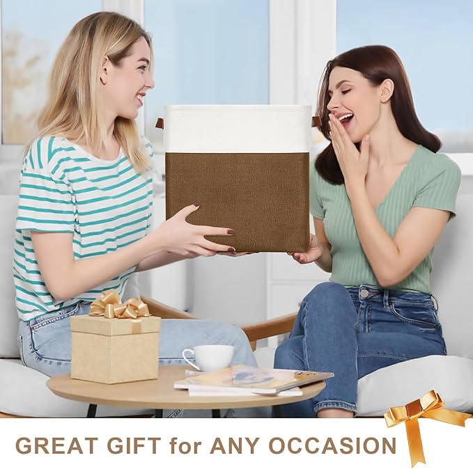 13x13 Cube Storage Bins, Collapsible Fabric Storage Box, 4 Pack Closet Baskets with Handles for Organizing, Shelf, Toys, Clothes, Home, Office, Nursery (Brown&White)