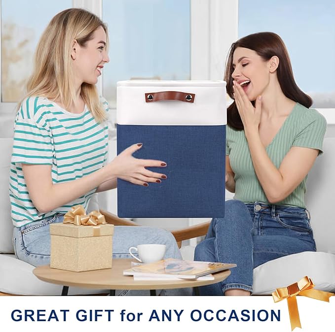 Large Fabric Storage Baskets | 50L Storage Bins, Decorative Linen Closet Baskets with Handles for Organizing, Shelf, Toys, Clothes, Home, Office, Nursery, 17x12x15Inches (Navyblue&White)