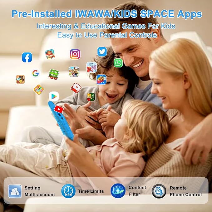 - 【Pre-Installed Parental Control & Educational Game】Z138 Kids Tablet is pre-installed with iwawa APP & Kids Space, which includes Montessori, Brain Training and other educational games for children over 2+ years old, so kids can learn and grow in a happy way,and age filtering ensures that kids of different ages only see filtered content. The easy-to-use Parental Control & Remote monitoring ensures always providing your kids a safe and clean online environment for having fun, no need to constant supervision. Anti-blue light, eye protection mode and blackout mode can reduced the screen flicker and the damage to the eyes caused by irritating blue light, maximize to protect children's vision.