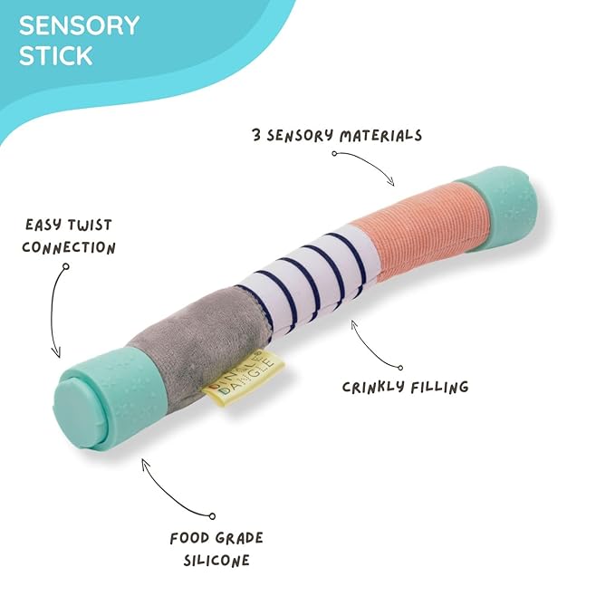 - Use 1: A sensory, head-worn baby changing helper for changing squirmy and wriggly babies; It looks so silly, however the sensory design works to distract the baby and keep them calm during changing time; Use 2: Sensory Rod: This isnโt just any rod, this is the MVP of distraction; With three different textured fabrics and high-contrast black and white colors
