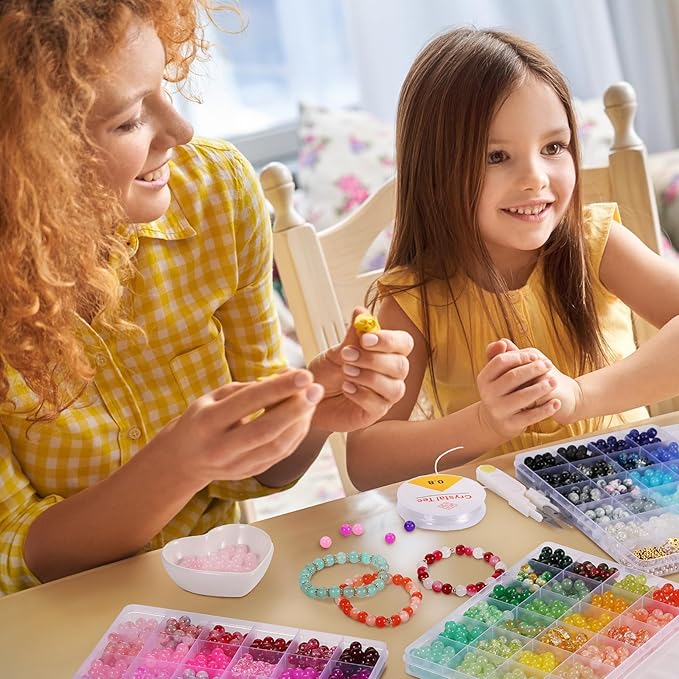 - 【Quality Glass Beads Kit】Our glass beads are made of premium glass material, all round beads have been finely polished to making each bead more textured, sleek and shiny, lightweight and waterproof, not easy to fade, comfortable to wear. All materials provided are completely safe and kid-friendly for girls ages 4+