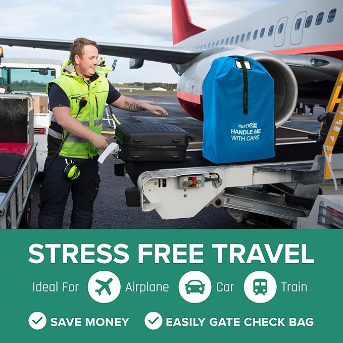 reperkid Medium Stroller Bag for Airplane Travel, Blue, 42" H x26 W x13 D, Fits Most Single Strollers Including Jogging & Standard Models – Premium Waterproof Cover, Adjustable Shoulder Straps
