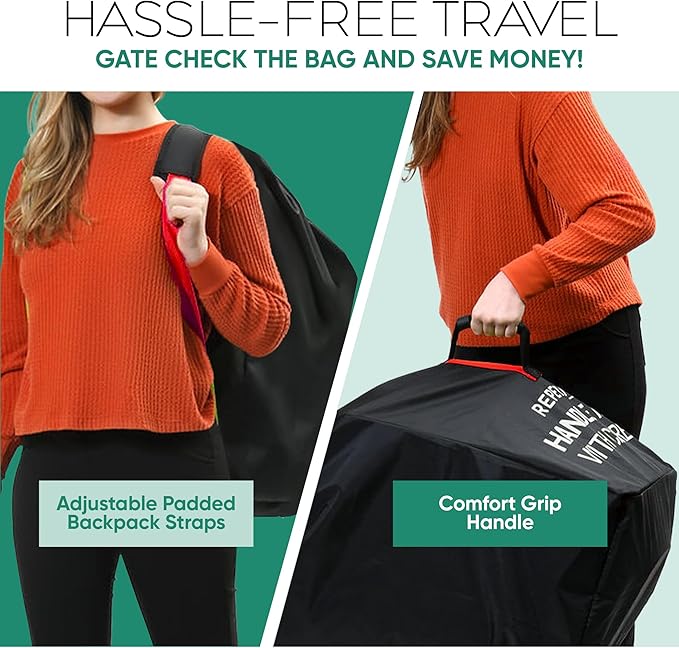 - Durable High-Performance Polyester – Constructed with tear-proof, double-stitched polyester fabric, this stroller bag ensures lasting protection for your stroller during airplane, train, and car travel. Built for frequent use with superior durability.