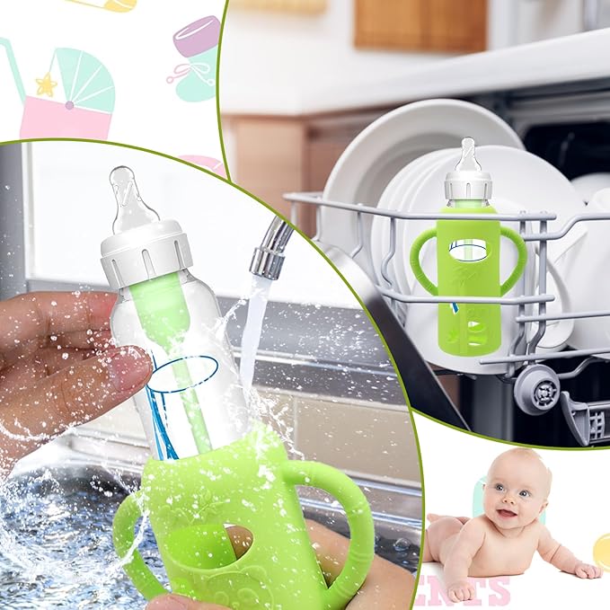 - Comfortably Use of Bottles - The fashion design silicone sleeve for Newborn baby bottles help grip for mom and also helps baby hold his bottle when it comes time for them to hold it . These bottle handles can be used for clean by dishwashers ,easy to clean.The silicone sleeve for Dr. Brown's bottle comes in cute colors and an adorable little cut out, so that you can easy to know amount of milk left