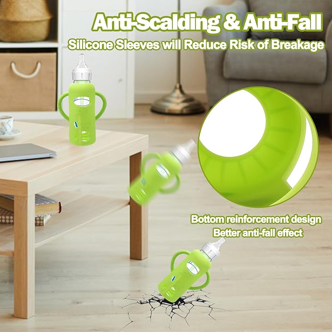 - Unique Designed for Baby Bottles - The silicone sleeves for Dr. Brown's Baby Bottles can against drop down,bumps and scratches. These are a must essential product for using glass baby bottles. They provide a more sturdy protection for glass baby bottle from breaking if dropped, which also unique handle design shape make it easier to grip and hold