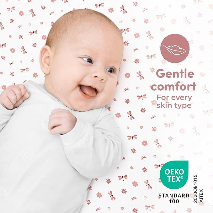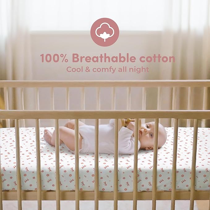 Sweety Fox 2-Pack Cotton Jersey Crib Sheets – Soft Fitted Sheets for Boys and Girls, Mini Crib Sheets, Toddler Bed Sheets (Dragonfly)